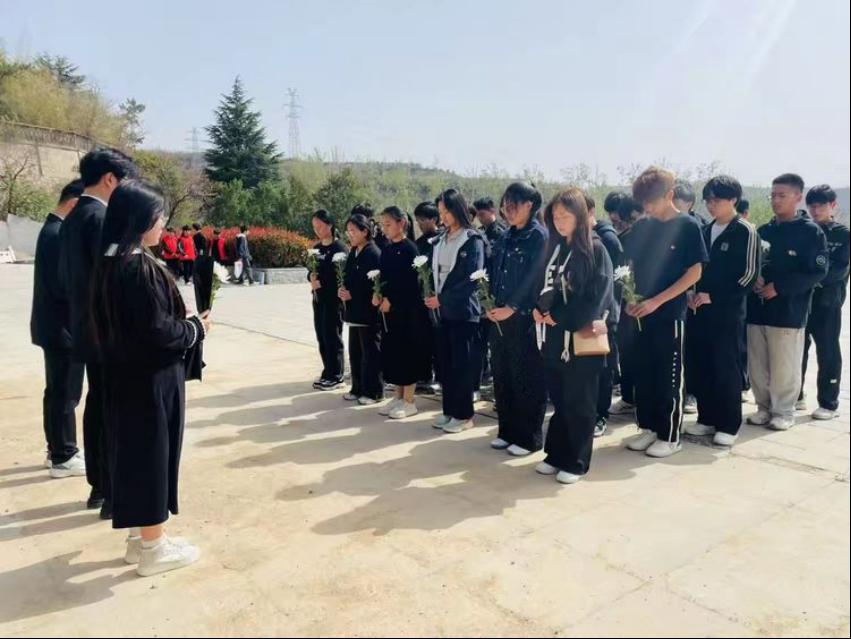 在庄严肃穆的烈士陵园中,师生们整齐列队,静静伫立在烈士纪念碑前,师生们怀着对先烈的无限敬意,向烈士纪念碑敬献鲜花,深深鞠躬、默哀,表达对革命先烈的深切哀思和崇高敬意。那一朵朵鲜花,寄托着无尽的怀念;那一次次鞠躬,彰显着崇高的敬仰。