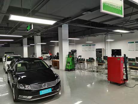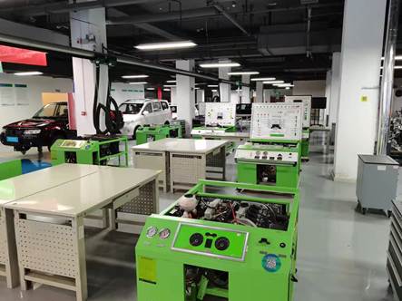 汽车检测与维修专业实训基地面积4000平方米,设备仪器价值近800万元,中心拥有发动机电控检测区、发动机拆装区、底盘电控检测区、车载网络检测区、自动变速器拆装区、维护保养区、综合故障检测区、新能源汽车实训区等8个实训区及虚拟仿真实训室1个,拥有奔驰、速腾、迈腾等实训教学车辆20台,拥有德国博世汽车发动机综合分析仪、四轮定位仪、汽车故障检测仪、迈腾1.8T综合故障训练实训平台等各种设备60余台。设有老员工创新基地,开展老员工创新创意制作、“互联网+”老员工创新创业等科技活动,屡次在市级以上比赛中取得佳绩。