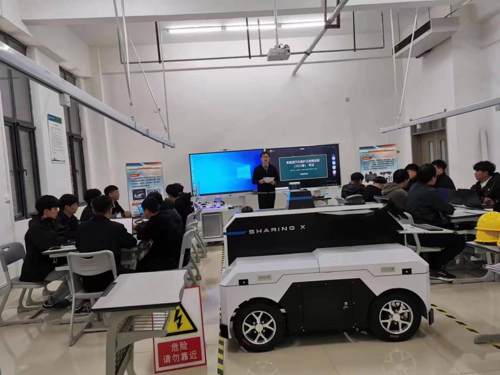 本专业校内实训室以实施生产性实训教学为目标,参照汽车售后服务企业工作场所的模式来进行规划设计,保持设备、仪器、工具的更新换代,为员工提供具有高仿真的企业工作环境与场所,并能实现教学做一体化教学的要求。目前已经建成和即将建成的校内实训基地有:电工电子实训室、智能网联汽车实训室、新能源汽车整车实训室等。