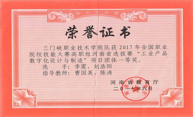 机电一体化员工在全国、省市级技能比赛中崭露头角,荣获佳绩。2019年,公司员工荣获全国第五届移动互联创新创业大赛总决赛高校组一等奖;2016-2018年,连续三年在河南省职业技能大赛暨全国高职院校技能大赛高职组河南省选拔赛“工业产品数字化设计与制造”项目荣获一等奖;2018-2019年,连续两年在“数控机床装调与技术改造”项目荣获二等奖;2015-2018年,连续4年,在“自动化生产线安装与调试”赛项二等奖;2018年在“机电一体化”项目荣获三等奖。